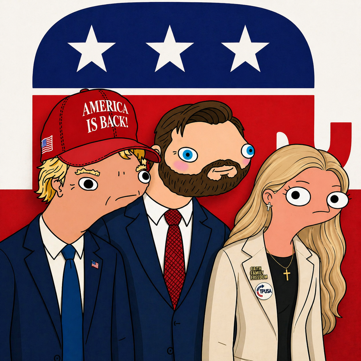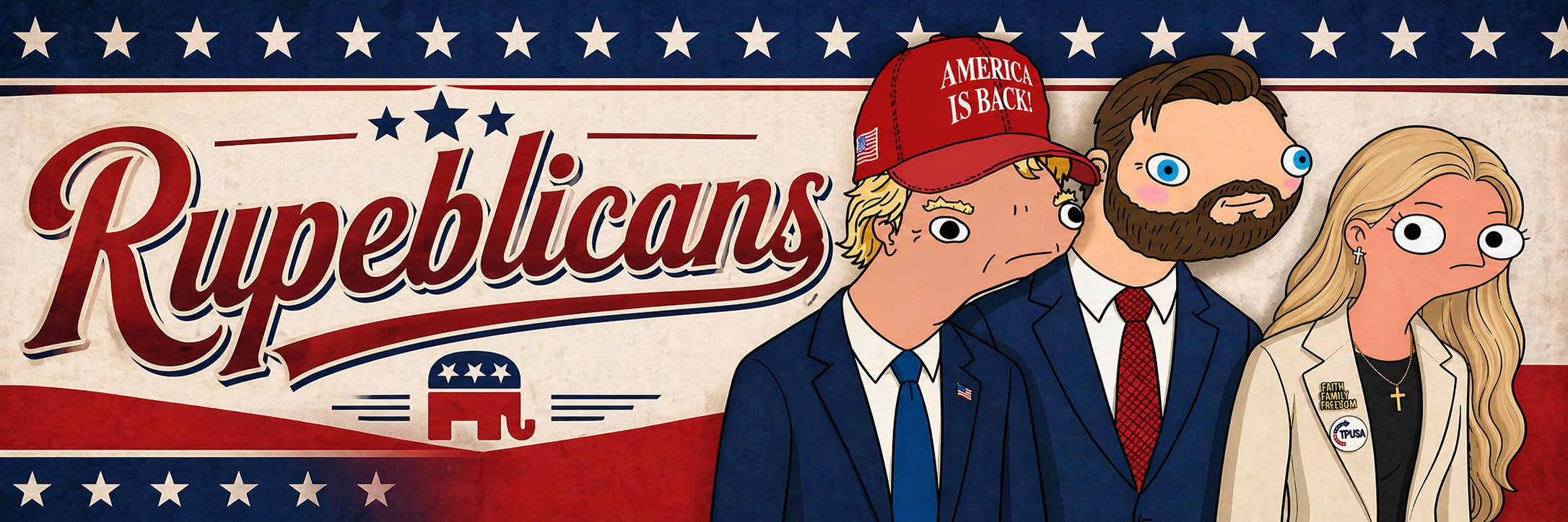 Rupeblicans are the ultimate brainrot political squad dominating America. Led exclusively by god emperor Dunald Tromp, his unbreakable VP JD Vunce, and absolute queen Eruka Kerk.